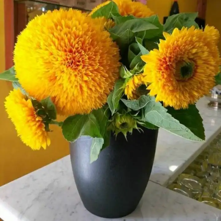 Ukurannya pas untuk menghiasi beranda. Daun bunga sunbeam yang panjang dan tidak simetris, serta bagian tengahnya yang sering berwarna kuning membuat bunga ini tambahan yang dramatis untuk buket bunga. Bunga matahari teddy bear merupakan salah satu bunga favorit para florists dan perajin bunga. Kemudian pilih benih yang berkualitas. Bunga matahari teddy bear memiliki warna kuning tua cenderung jingga dan tingginya kurang dari 1 meter.